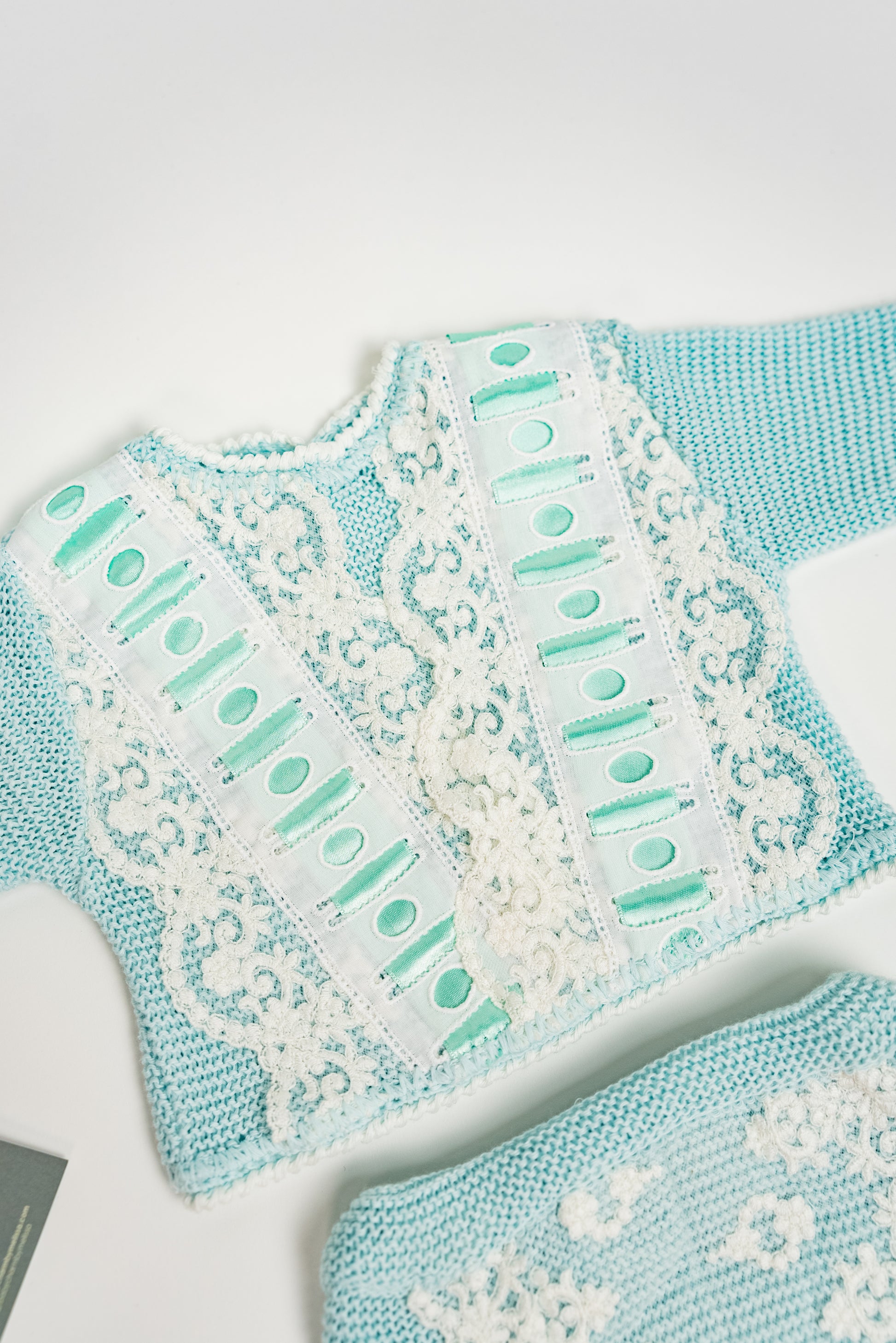 When looking for a classic coming home outfit, you want something as comfortable as this beautiful knitted hypoallergenic set, your baby will adore it!