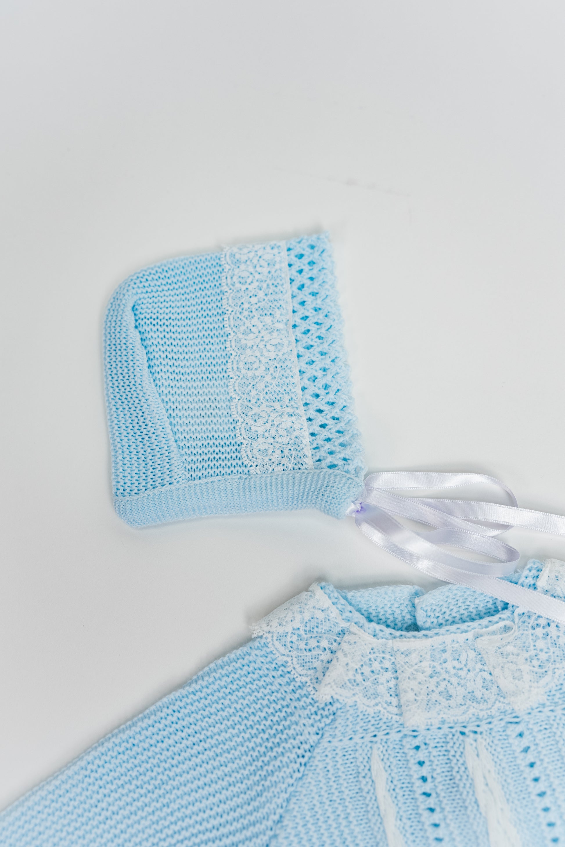 When looking for a classic coming home outfit, you want something as comfortable as this beautiful knitted hypoallergenic set, your baby will adore it!